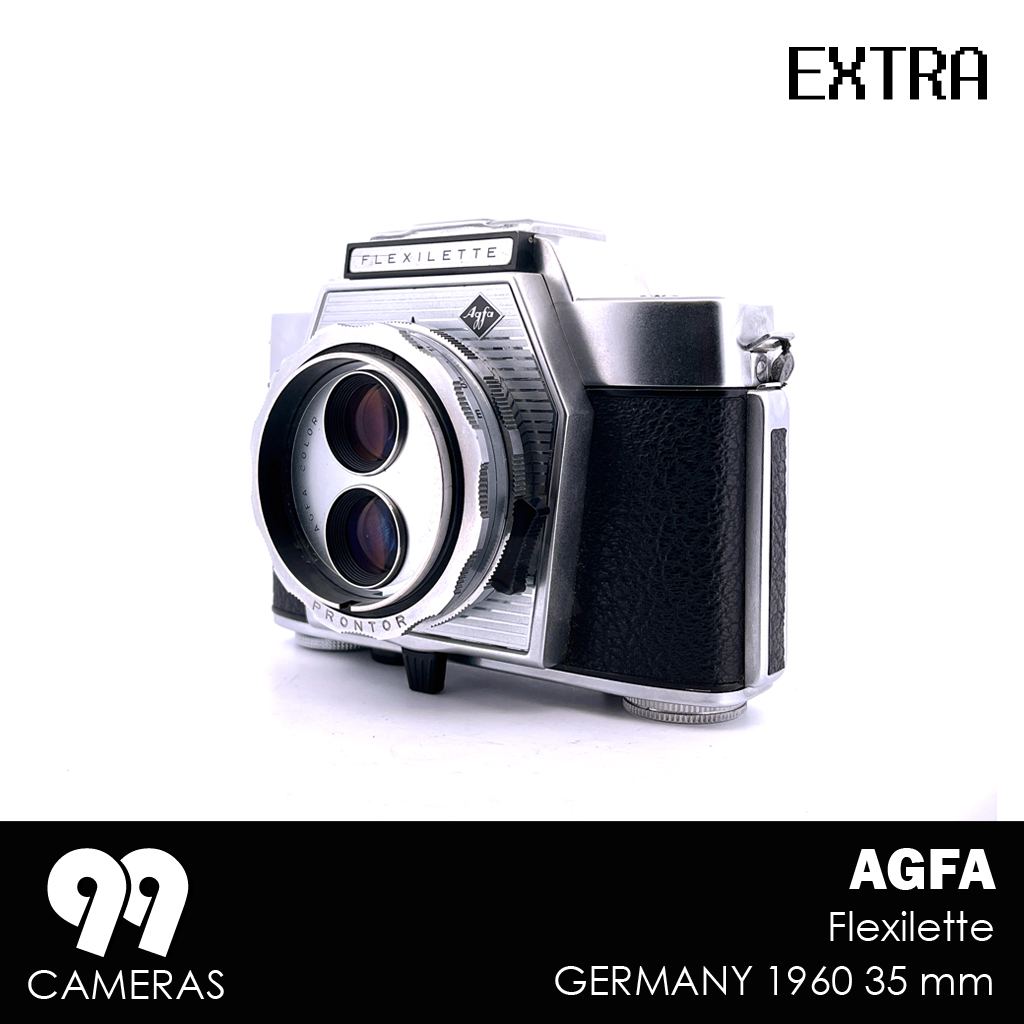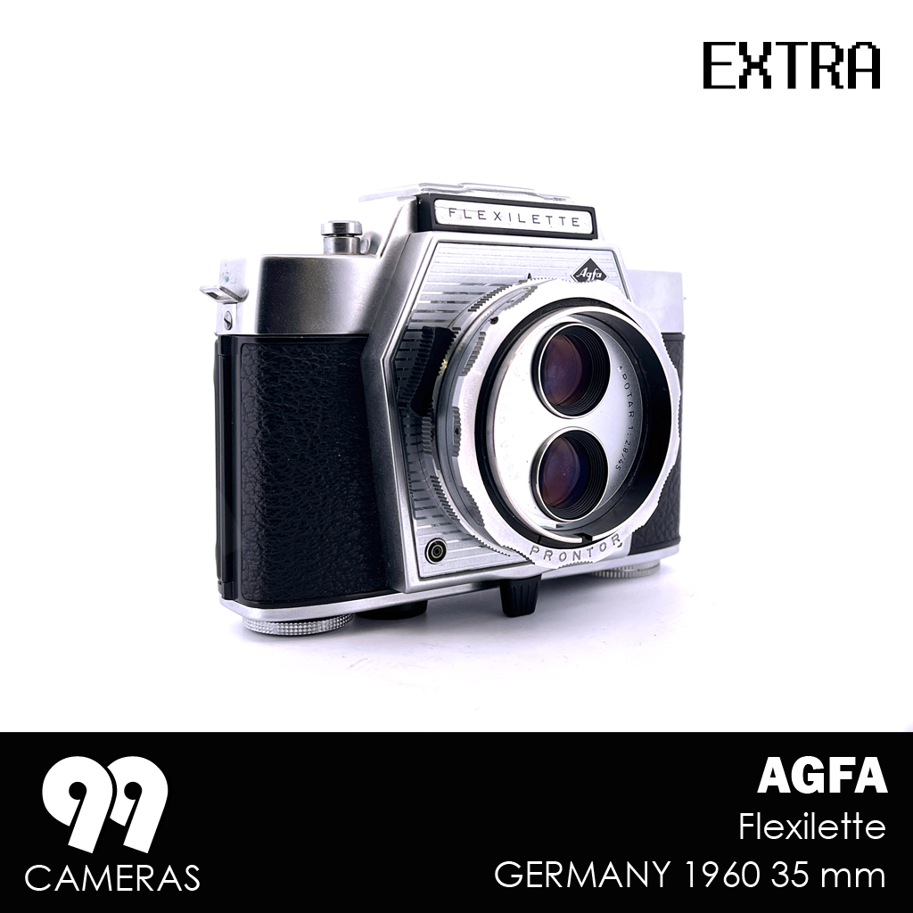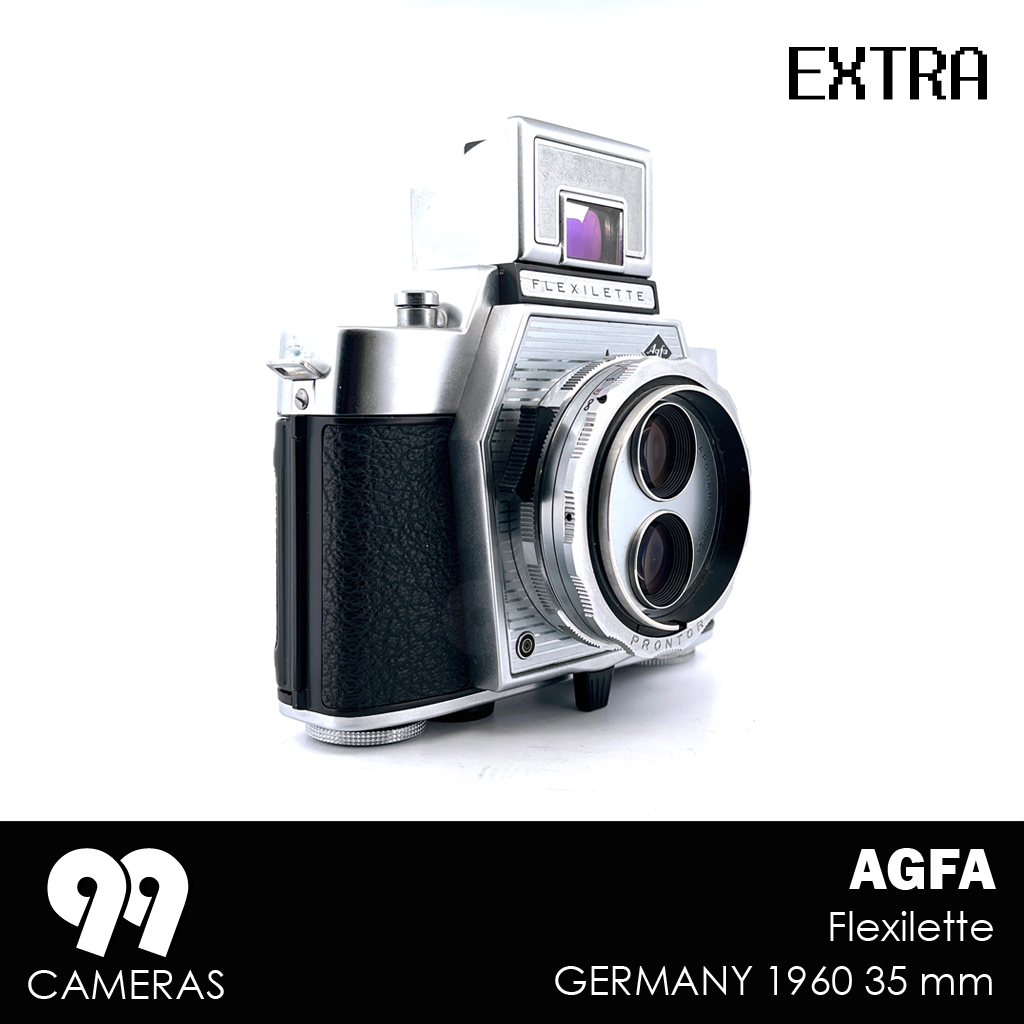 The Flexilette (also sold as the Agfa Reflex) is a very unusual TLR camera produced by Agfa in 1960. The body is similar to a conventional 35 mm viewfinder camera but made a little taller with the extra lens and viewfinder grafted on.