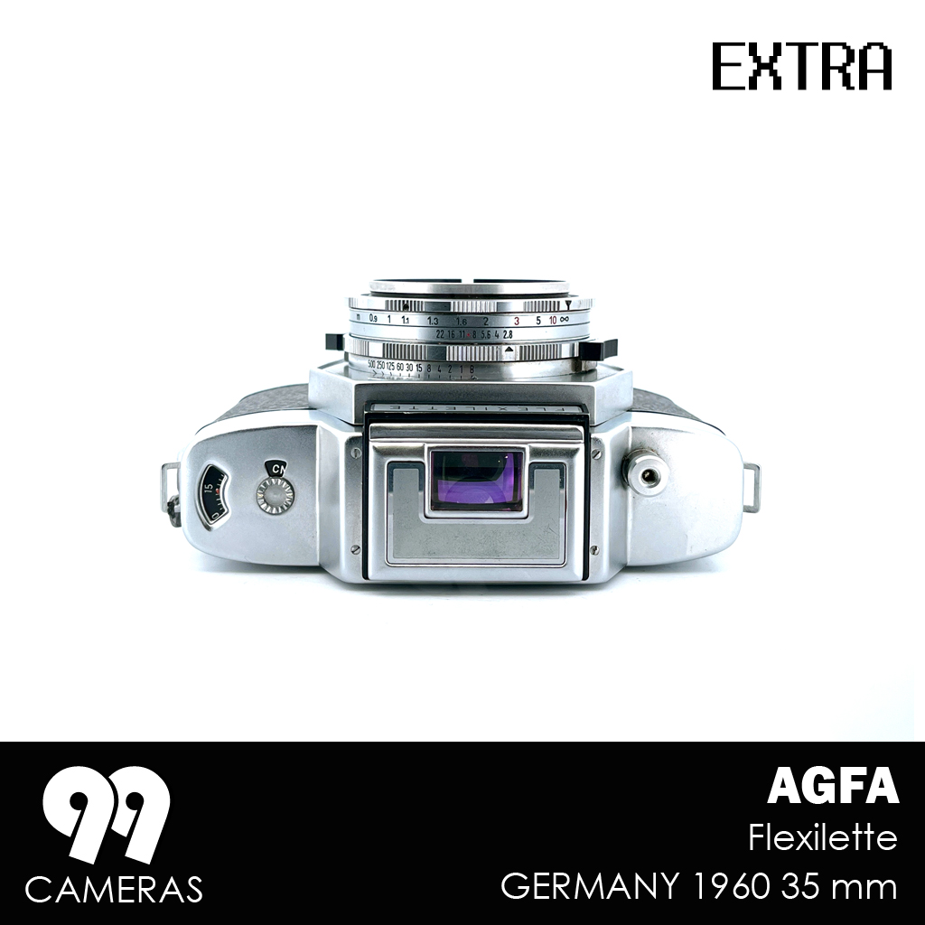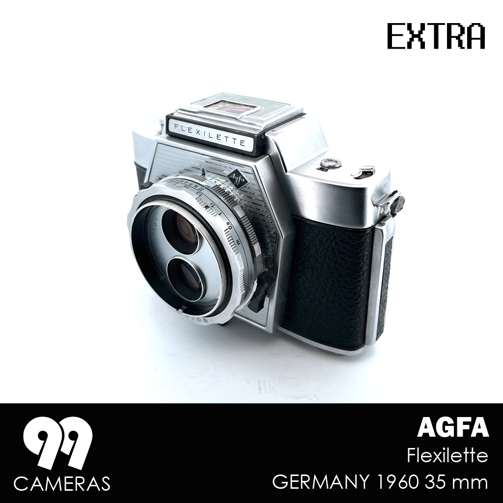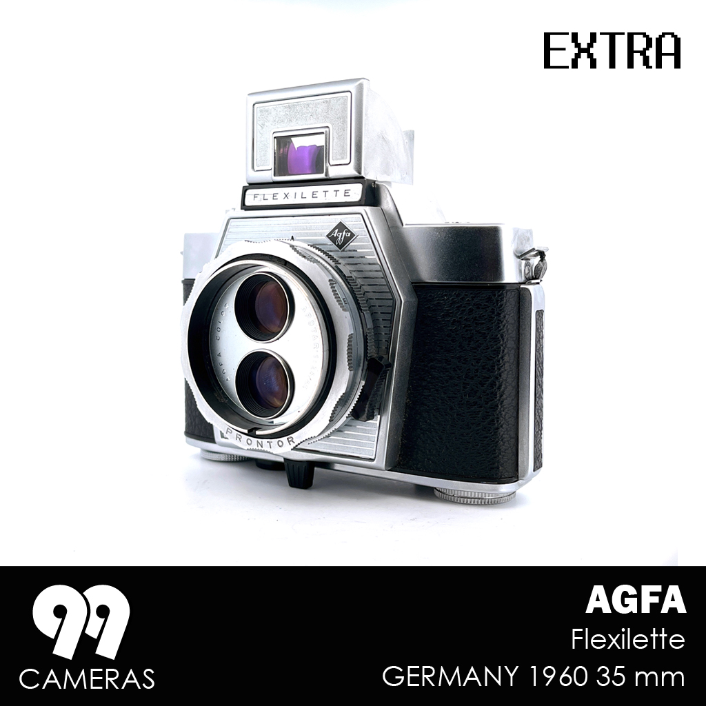 The Flexilette (also sold as the Agfa Reflex) is a very unusual TLR camera produced by Agfa in 1960. The body is similar to a conventional 35 mm viewfinder camera but made a little taller with the extra lens and viewfinder grafted on.