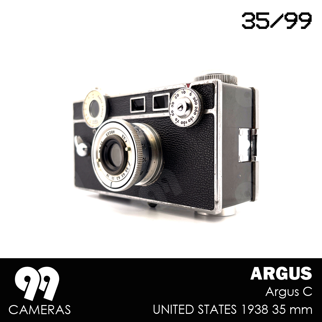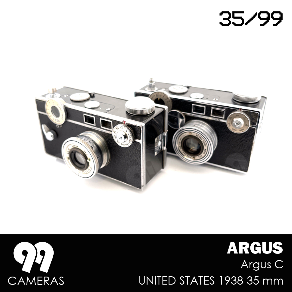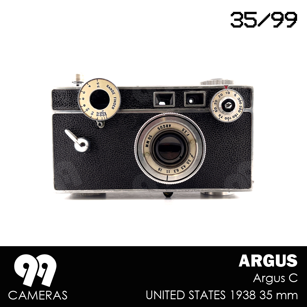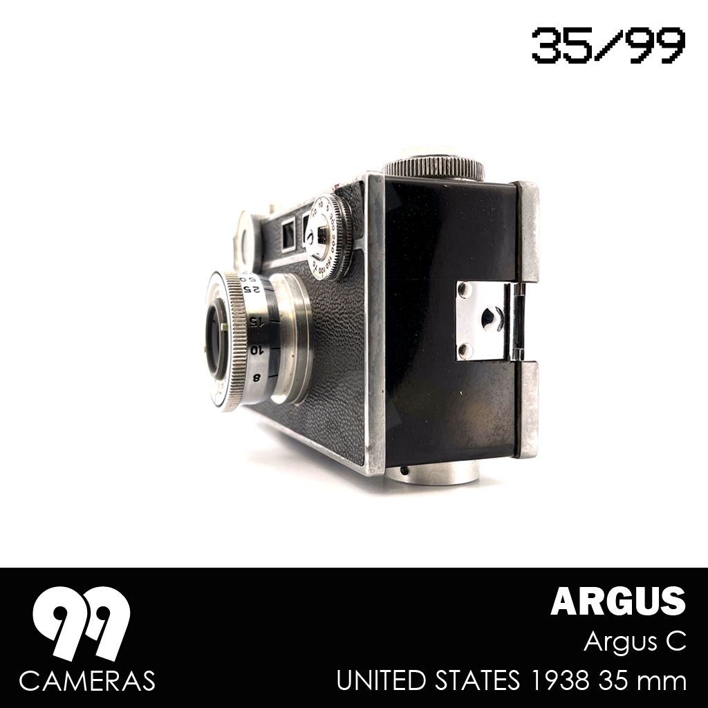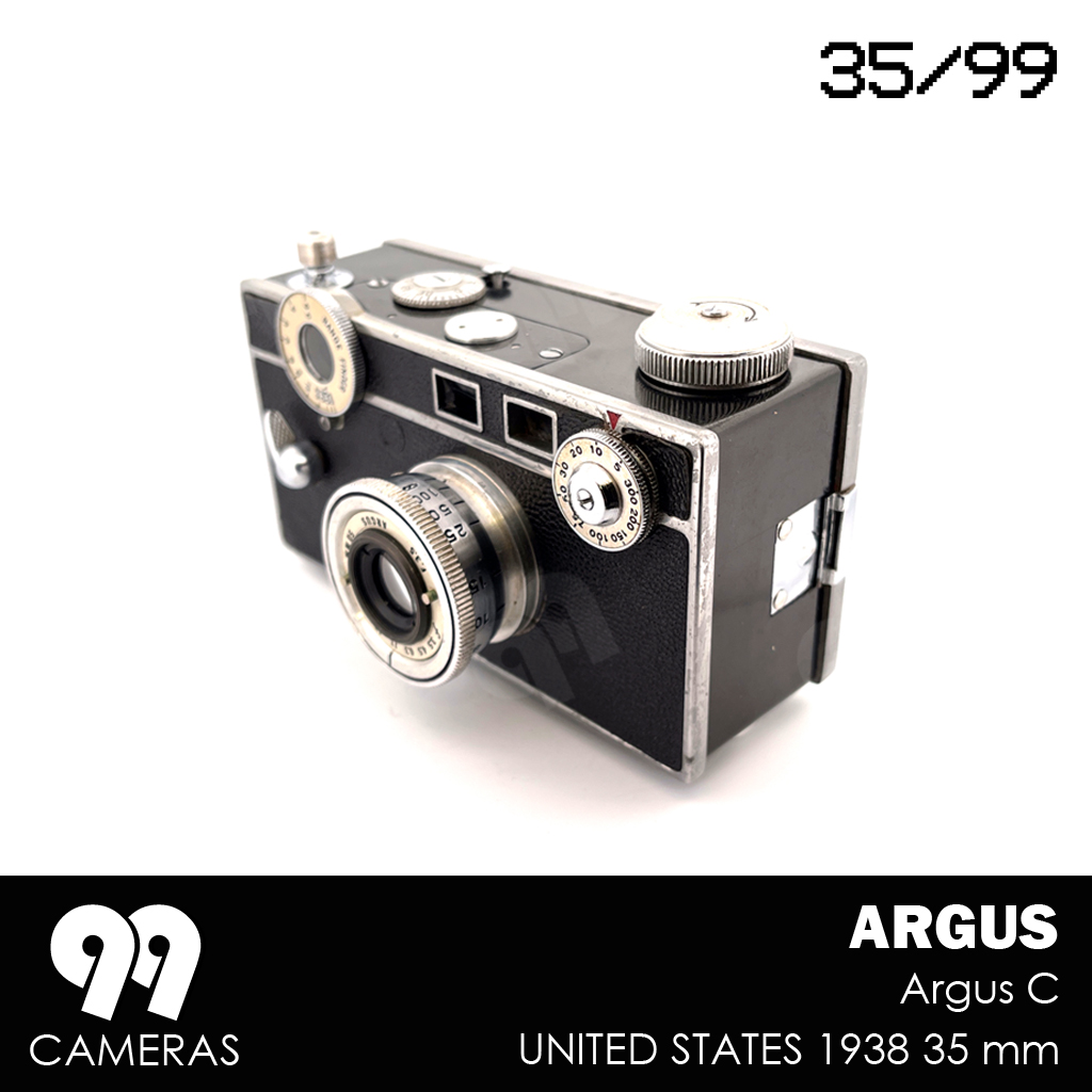 The original Argus C was only produced in 1938 to be replaced within just a few months by the Argus C2, with a geared coupling between the rangefinder and the lens, greatly accelerating focusing and making the camera much more convenient to use. The Argus C is primarily made of bakelite and metal castings. Its unusual and yet simple design earned it a reputation for rugged durability and sharp, high-quality images.