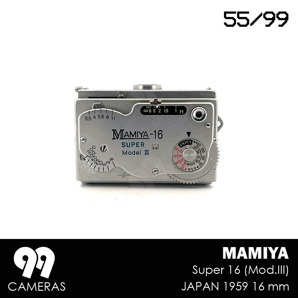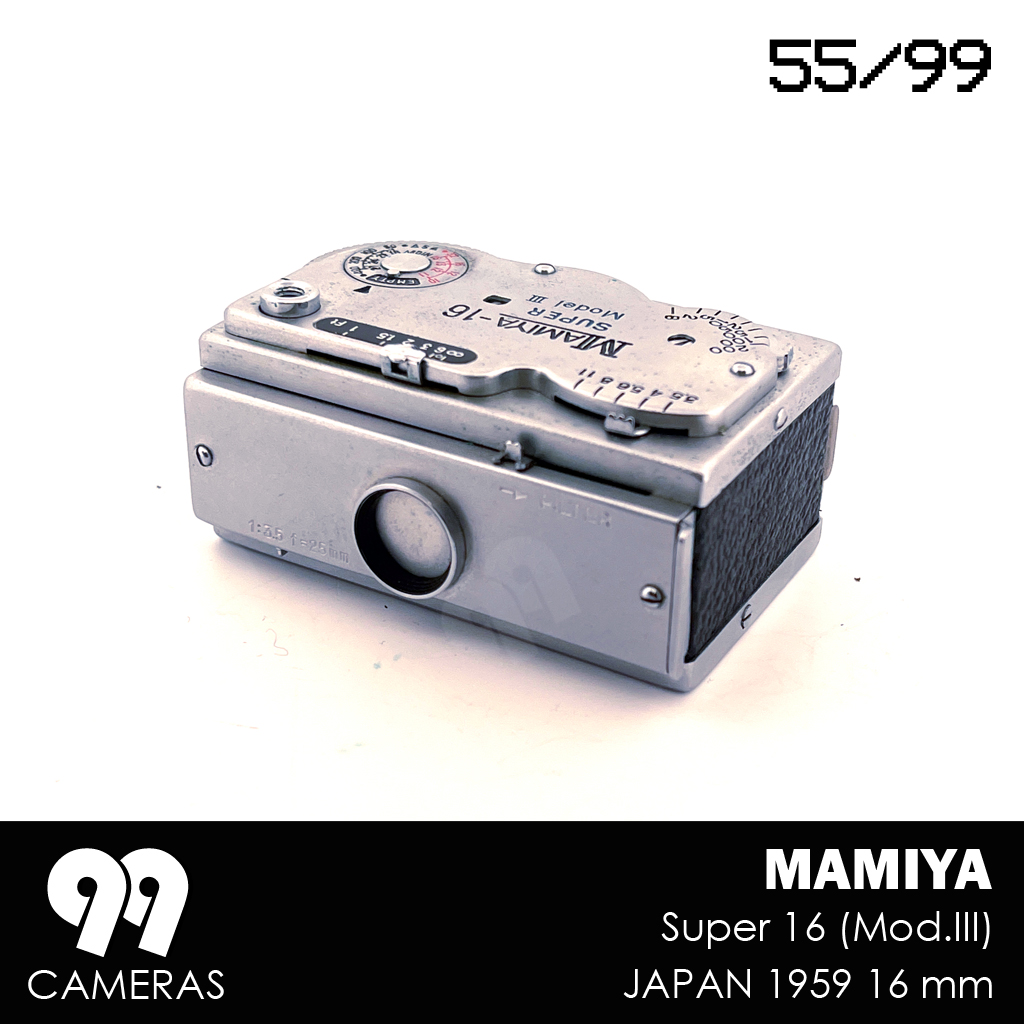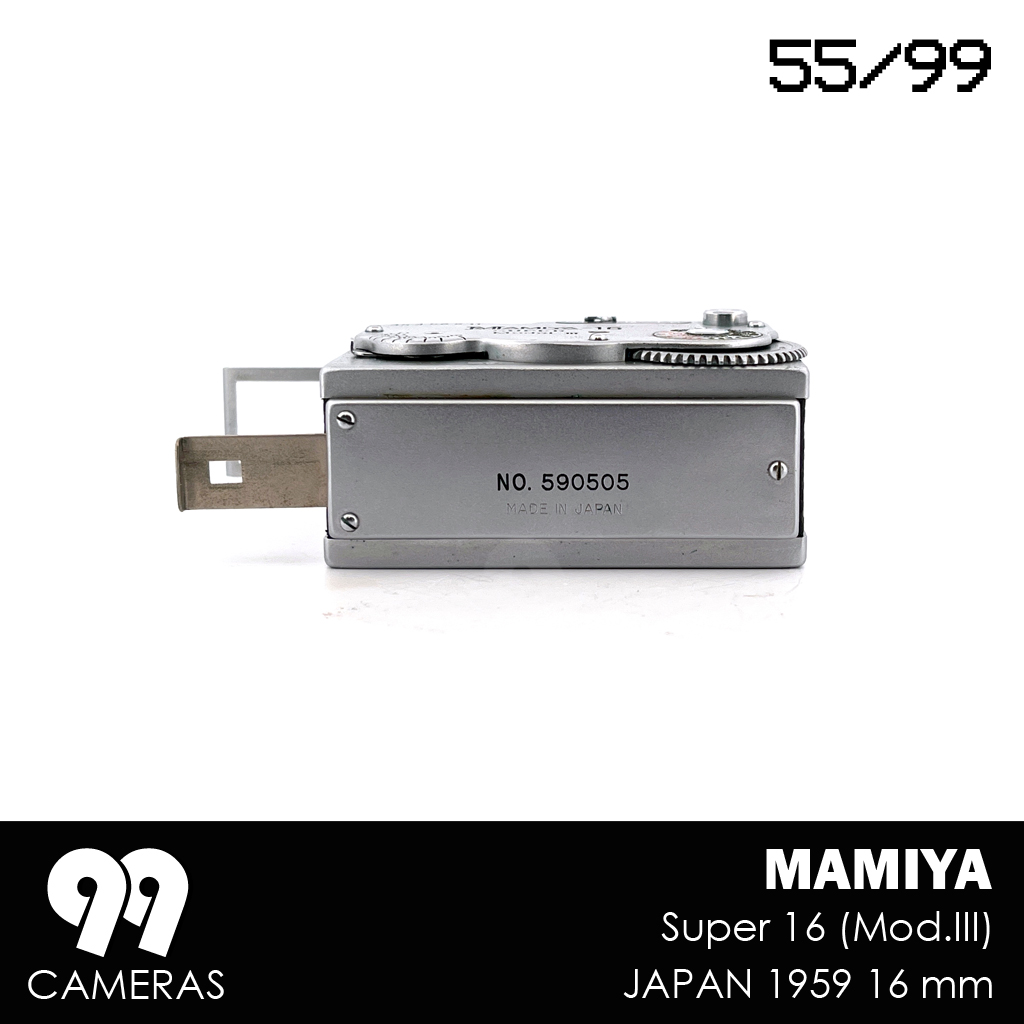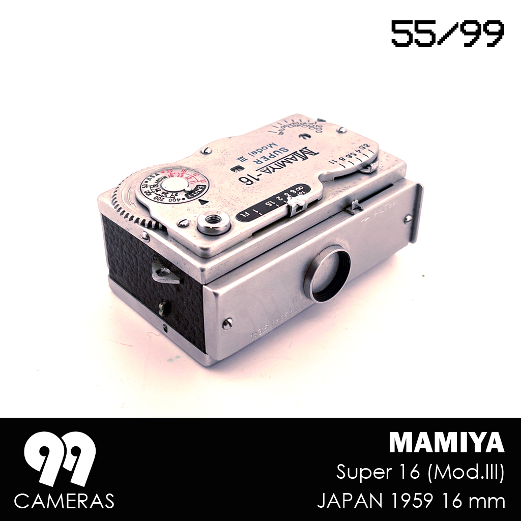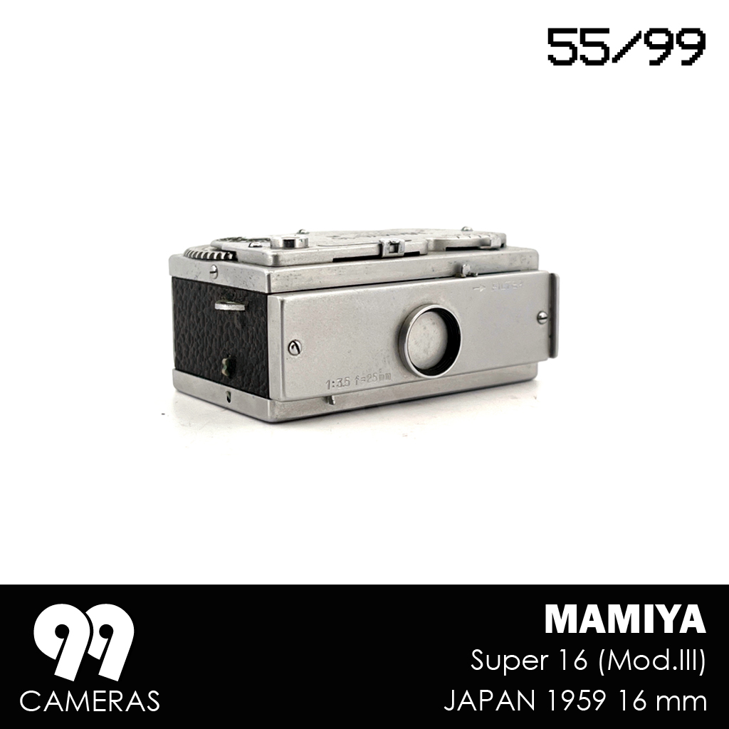 The Mamiya Super 16 was manufactured by Mamiya Camera Company of Tokyo in the early 1950s. Mamiya was well known for the Mamiya Six, a 6×6 foldable they had been producing since 1940. Starting 1949, they made a successful series of 16 mm cameras that lasted until 1962.