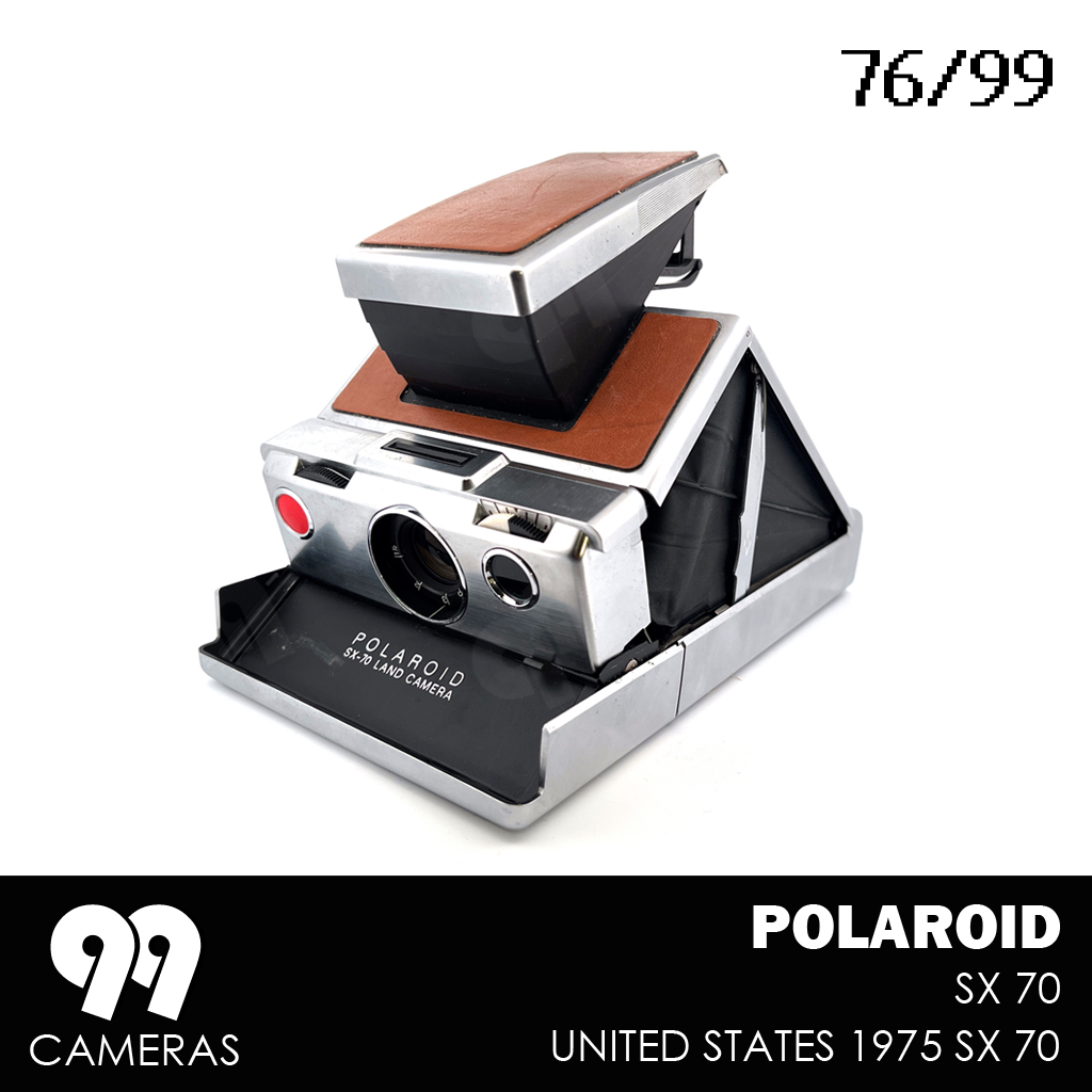 The first folding SX-70 (sometimes called Deluxe) was built in brushed steel and wrapped in brown leather. This specific version is a very desired collectible to the point that a gold plated anniversary edition was recently released by Polaroid.