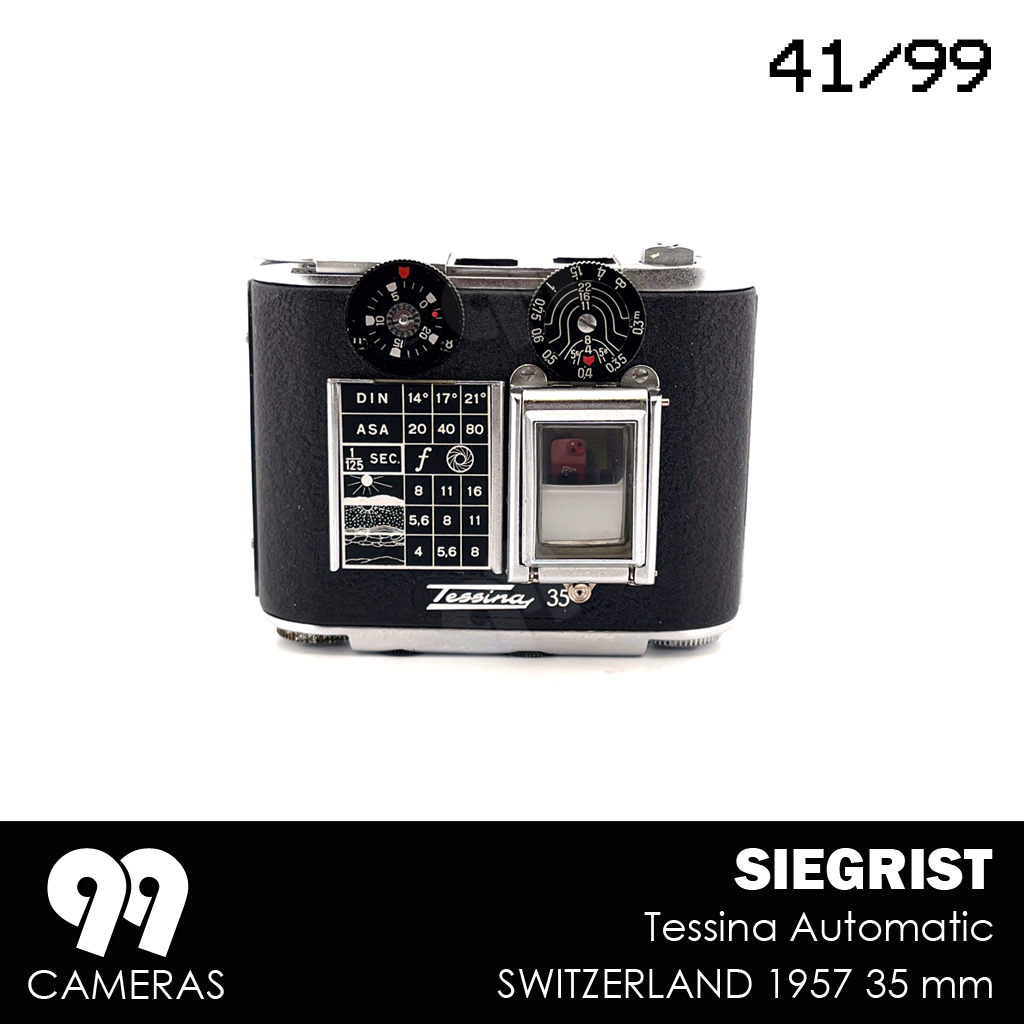 The Tessina, produced in Lugano in 1957, and is probably the smallest half-frame 35mm camera ever built. And possibly the strangest. It is a twin-lens reflex with pop-up viewfinder and a clock-work motor drive designed for waist-level inconspicuous photography.